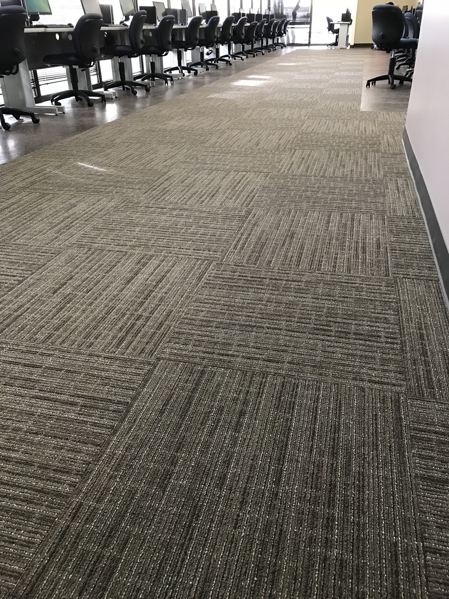 Replacing their old original ceramic tile, with J&J Flooring Group, 5mm, 20mil wear layer LVP “Timeless” 9”x48” series, paired with accent colors and from the “Make Your Mark” 9”x48” series. With an integrated abstract design of J&J Kinetex “Network” 24”x24” series with added accent colors, transforming the Study Commons into a much quieter environment in this high-traffic area. To top off this project, we installed J&J Incognito 24”x24” walk-off carpet tile at all the entrance doors.